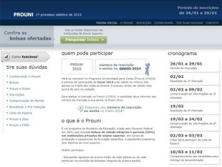 O Ministério da Educação abriu nesta segunda-feira (26) as inscrições para bolsas de estudo em faculdades particulares da primeira edição de 2015 do Programa Universidade para Todos (Prouni). A inscrição deve ser feita no site do Prouni. O prazo vai até as 23h59 do dia 29.
