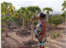 “Eu sempre gostei de cuidar das plantas e agora, com essa água, consigo vê-las crescer”, comemora Dona Cida, mostrando com orgulho os pés de acerola, pinha, goiaba, mamão e a plantação de palma em seu quintal.