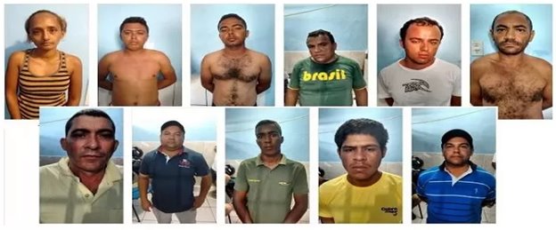 Foram presos: Maria Elisangela dos Santos Rogério, 32 anos, “Miúda”, Sozânio Soares de Melo, de 24 anos, Elanio Doares Melo, 26, Adair José Bezerra Pereira, 36, Maciel Vieira Barros, 24 anos, José Aparecido Ferreira da Silva, 42, Damião Nobre Rodrigues, 42, Marcos Queiroz Cardoso, 40, Wedson da Silva Silveira, 20, Diego Gabriel Januário de Melo, 23, além de Acácio Queiroz Cardoso, 38.