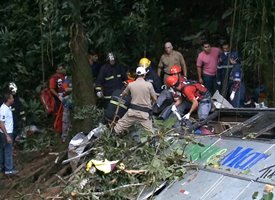 Mais um corpo foi encontrado durante a remoção do ônibus que caiu de um ribanceira na Serra Dona Francisca, em Joinville, no Norte catarinense. O acidente foi no fim da tarde deste sábado (14) e até a manhã deste domingo (15) o número de mortos chegava a 50 pessoas, entre crianças e adultos. Segundo a Polícia Militar Rodoviária (PMRv), esta é a 51ª vítima do acidente e pode ser um dos desaparecidos listados pelo Instituto Médico Legal (IML).