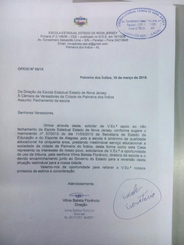 Numa postagem nas redes sociais a vereadora Sheila Duarte (PT), informou na noite desta quarta-feira (18), sobre o possivel fechamento da Escola Estadual Estado de Nova Jersey em Palmeira dos Índios.