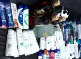 Com eles foram apreendidos: 70 pacotes de leite, 31 desodorantes, 26 sabonetes líquidos e ainda cremes de cabelo, xampus, bebidas alcoólicas, dentre outros produtos.