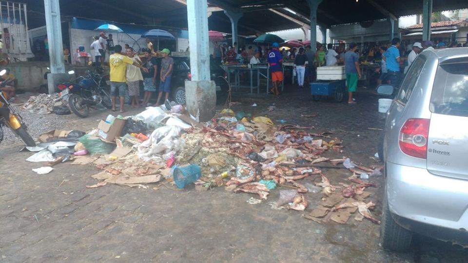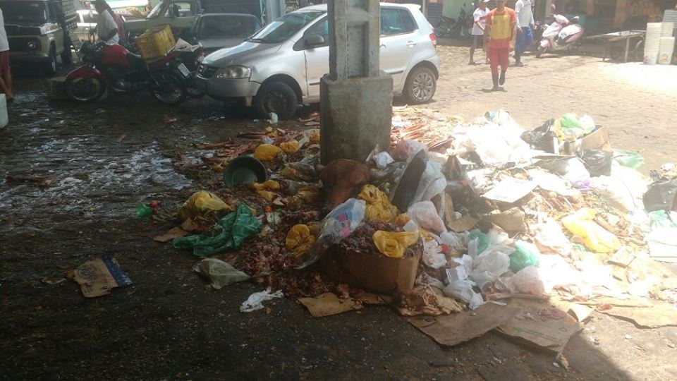 No mercado da carne, feirantes e clientes dividem espaço com o lixo.  “É impressionante a falta de cuidado da prefeitura com esse mercado desde o começo da gestão. Sempre foi assim, imagina no final de mandato se o prefeito iria fazer alguma coisa. Isso é um absurdo”, desabafou a secretária Maria do Carmo, moradora do Bairro Paraíso.