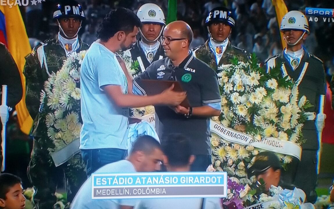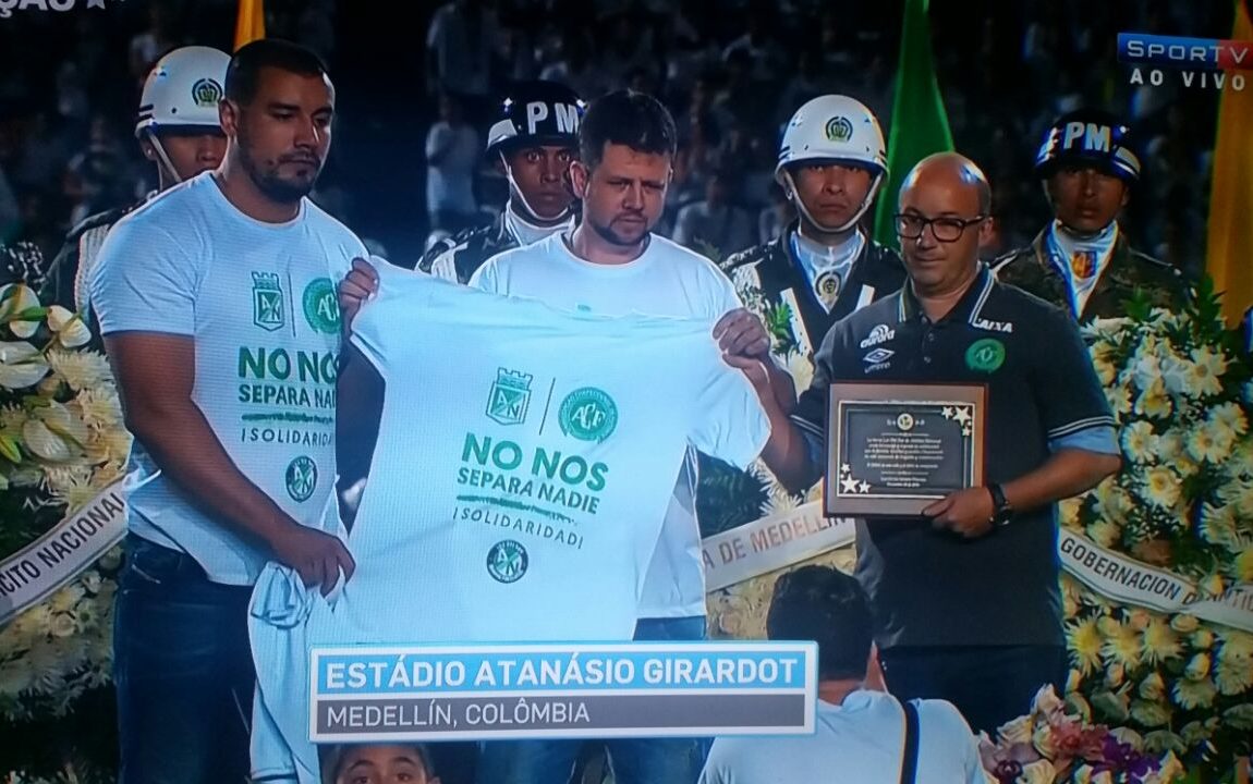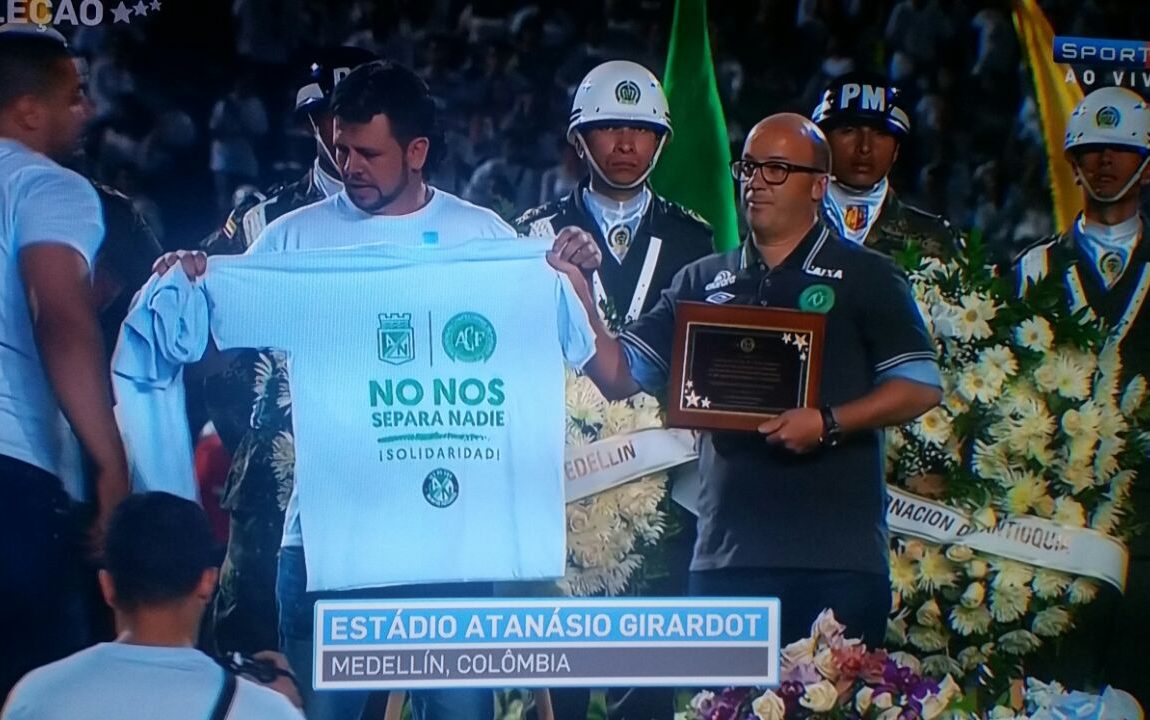 A cerimônia de homenagem a Chapecoense no estádio Atanasio Girardot contou com a presença de importantes autoridades. Entre elas, o ministro das Relações Exteriores do Brasil, José Serra; o governador do departamento da Antioquia, Luis Perez; o prefeito de Medellín, Federico Guitiérrez Zuluaga; e o presidente do Atlético Nacional, Juan Carlos de la Cuesta, que se vestiu de preto, em luto. O tributo contou com a participação da Orquestra Sinfônica da Colômbia, que tocou o hino do país e, em seguida, o do Brasil – muito aplaudido pelos torcedores locais.