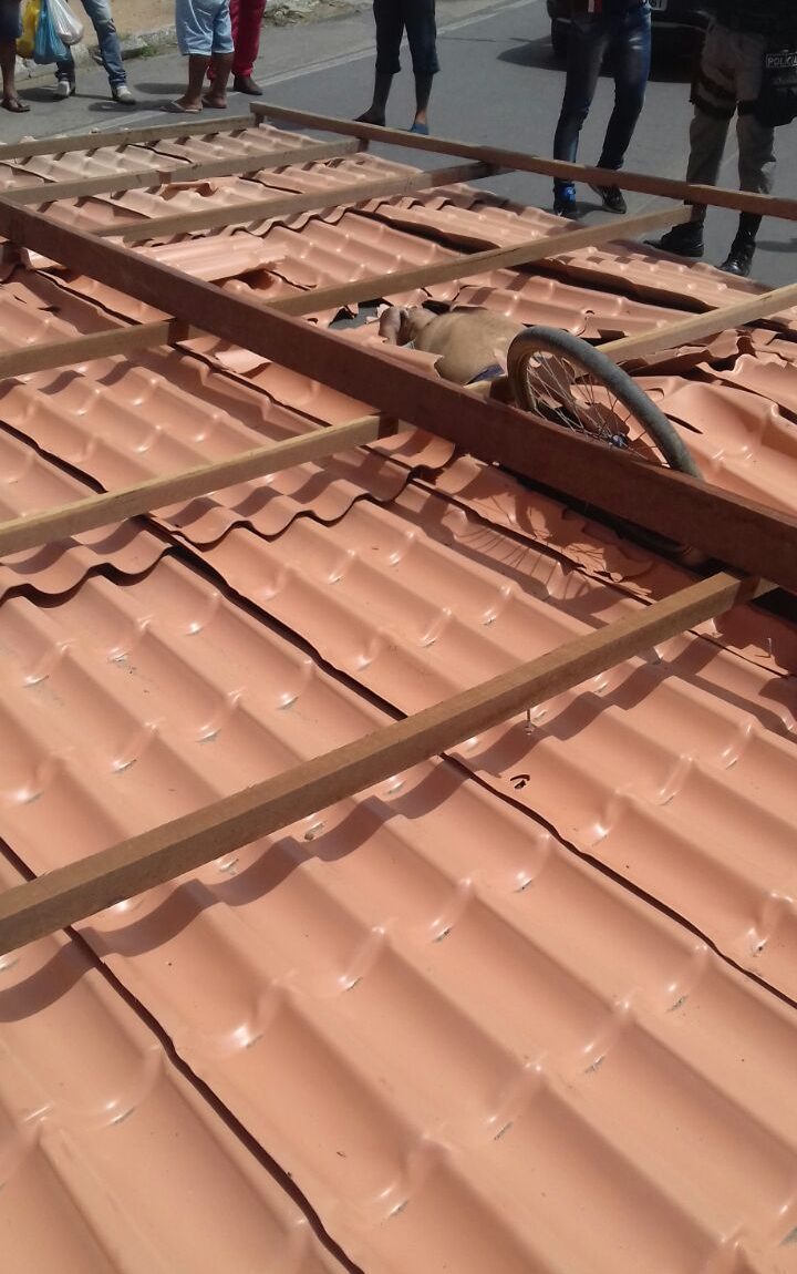 Devido a força do vento, a estrutura se desprendeu e veio a atingir o idoso que morreu no local. A vítima ainda não foi identificada.