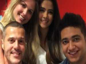 Júlio César, que está com 37 anos, vive em Portugal com a esposa, Susana Werner, e os três filhos do casal. O goleiro foi com a família ao show sertanejo e visitou o camarim de Henrique & Juliano.