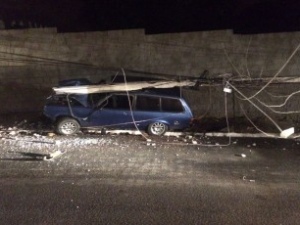 Com o impacto, o poste caiu em cima do veículo Paraty, de cor azul e de placa BRO-3638, de São Paulo.