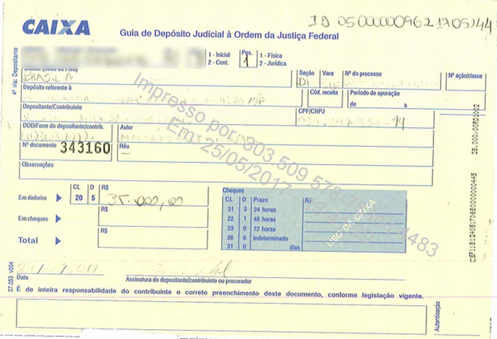 “Rodrigo Santos da Rocha Loures, por seus advogados, nos autos da ação cautelar nº 4328, vem perante Vossa Excelência informar que realizou na data de ontem o depósito judicial de R$ 35.000,00 (trinta e cinco mil reais), quantia esta relacionada à investigação conduzida nos autos do inquérito nº 4483, conforme guia de depósito judicial ora apresentada (doc. 1). O referido montante encontra-se depositado na conta nº 86400176-5, agência nº 3133, da Caixa Econômica Federal”, diz a petição enviada ao ministro Fachin.