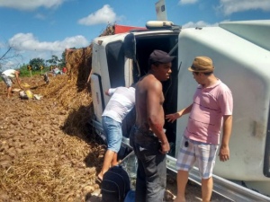 A carreta tombou na altura do quilômetro 101, no acostamento e a carga ficou espalhada na pista, sendo parte dela saqueada por pessoas que vivem ou que passavam pela região.