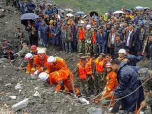 Imagens divulgadas pela televisão oficial “CCTV” mostram diversos soldados levantando pesadas pedras e a várias retroescavadeiras trabalhando na região onde estavam as pessoas que ficaram soterradas.