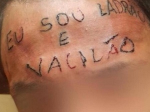 A vítima teve a mensagem “eu sou ladrão e vacilão” tatuada na testa depois de uma confusão envolvendo a bicicleta de um deficiente físico. Os suspeitos alegam que o adolescente tentou furtar o veículo, enquanto a vítima nega e diz que apenas esbarrou nela.
