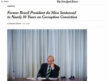 Nos Estados Unidos, o “New York Times” afirma que trata-se de “um revés impressionante para um político que exerceu enorme influência na América Latina por décadas”. “O caso contra o senhor da Silva, que elevou o perfil do Brasil no cenário mundial como presidente entre 2003 e 2010, decorreu de acusações de que ele e sua mulher receberam ilegalmente de umaempresa de construção US$ 1,1 milhão em melhorias e despesas para um apartamento de frente para o mar”, diz o texto.