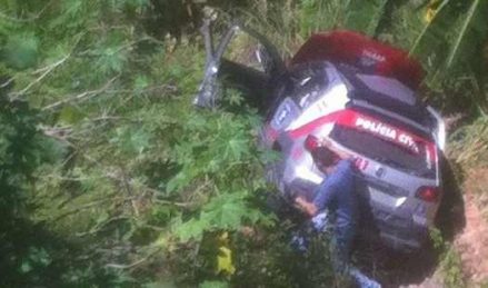 Viatura da Polícia cai em ribanceira após acidente com mais dois veículos