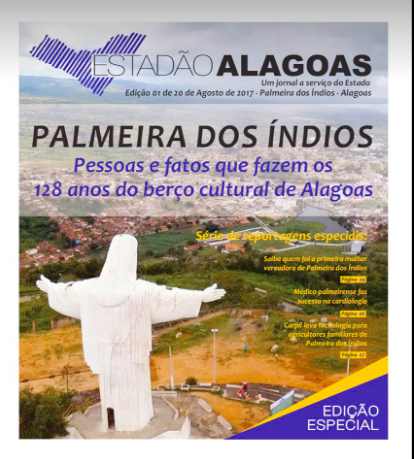 Estadão Alagoas lança versão impressa e hotsite em homenagem aos 128 anos de Palmeira dos Índios