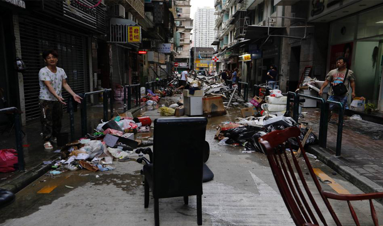 A tempestade tropical deixou 17 mortos na quarta-feira ao chegar no litoral sul da China, nove deles na cidade autônoma de Macau, onde o Exército foi enviado para ajudar na recuperação por causa da grande destruição causada.