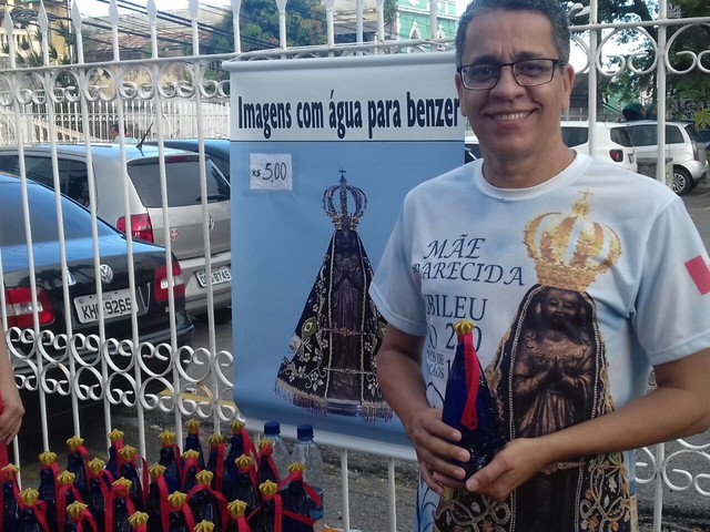Já o motorista Frederico Vieira, 47 anos, aproveitou as comemorações em homenagem a Padroeira de Maceió para vender imagens de Nossa Senhora Aparecida, Padroeira do Brasil.