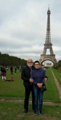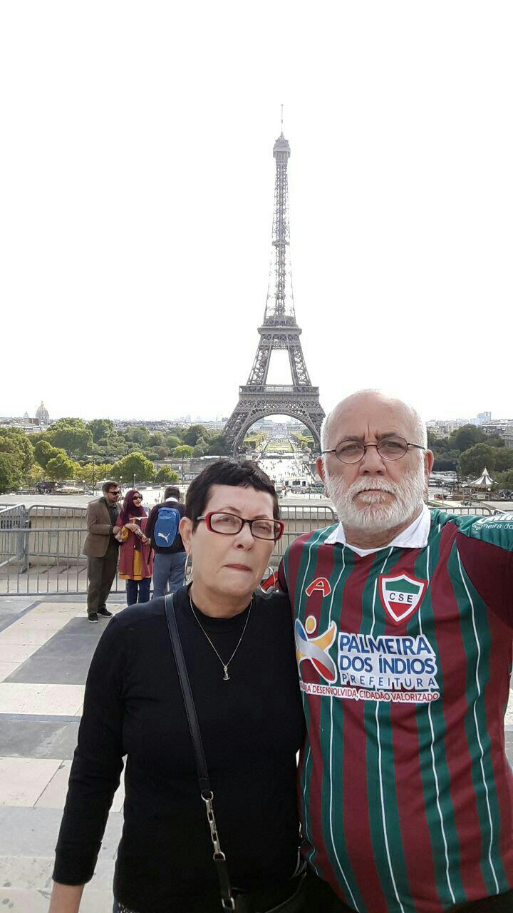 Acompanhado de sua esposa, Aloisio Guimarães desfila pelas ruas de Paris, orgulhosamente vestido com as cores do tricolor.
