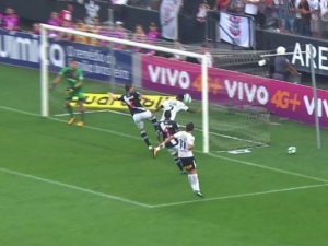 Parecia que o Corinthians não ia conseguir o gol independentemente de quantas chances tivesse. Até que Marquinhos Gabriel, que havia entrado pouco antes no lugar de Jadson, fez linda jogada pela esquerda e cruzou. Jô, com o braço, mandou para o fundo da rede para delírio da torcida. Os jogadores vascaínos reclamaram muito com a arbitragem, mas o gol irregular foi validado.