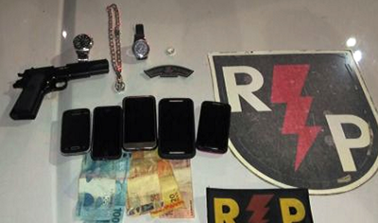 Foram presos Jonathas Lessa dos Santos, 21 Anos; Cleidson Anderson Santos da Rocha, 29 Anos; e Marlon Gabriel Ramos da Silva, 24 Anos. Com eles foram recuperados dois relógios de pulso; cinco aparelhos celulares; uma corrente e uma aliança de prata; R$ 280,00 em espécie; além de um simulacro de arma de fogo.