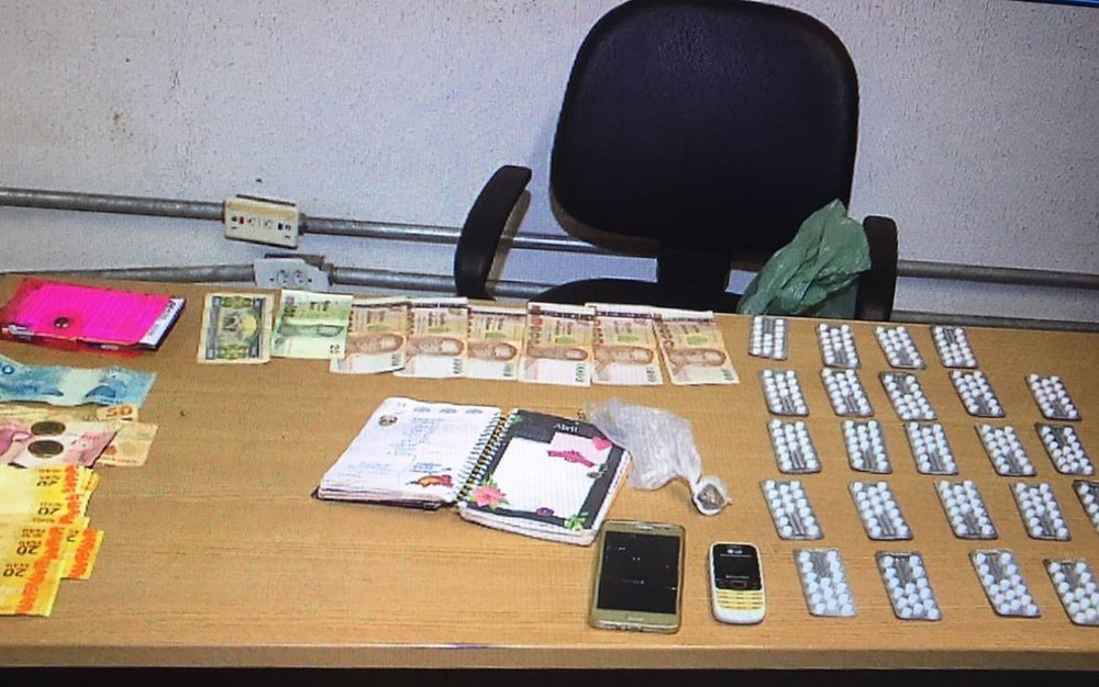 Com a mulher, os policiais também apreenderam uma agenda com anotações indicando valores recebidos e nomes. A costureira também estava com dinheiro, tendo cédulas de real e moedas estrangeiras.