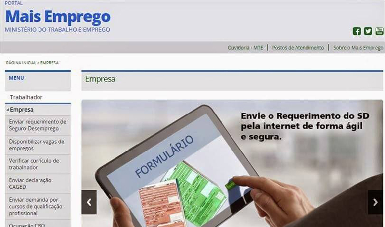 - Seguro-Desemprego Web: O trabalhador poderá solicitar o benefício pela internet, no site do programa “Emprega Brasil”.