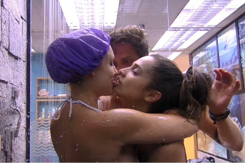 O clima entre as sisters não parou por aí. Breno, que acompanhava tudo ao lado, dentro do chuveiro, resolveu entrar na brincadeira e protagonizou um beijo triplo com as duas integrantes da casa.