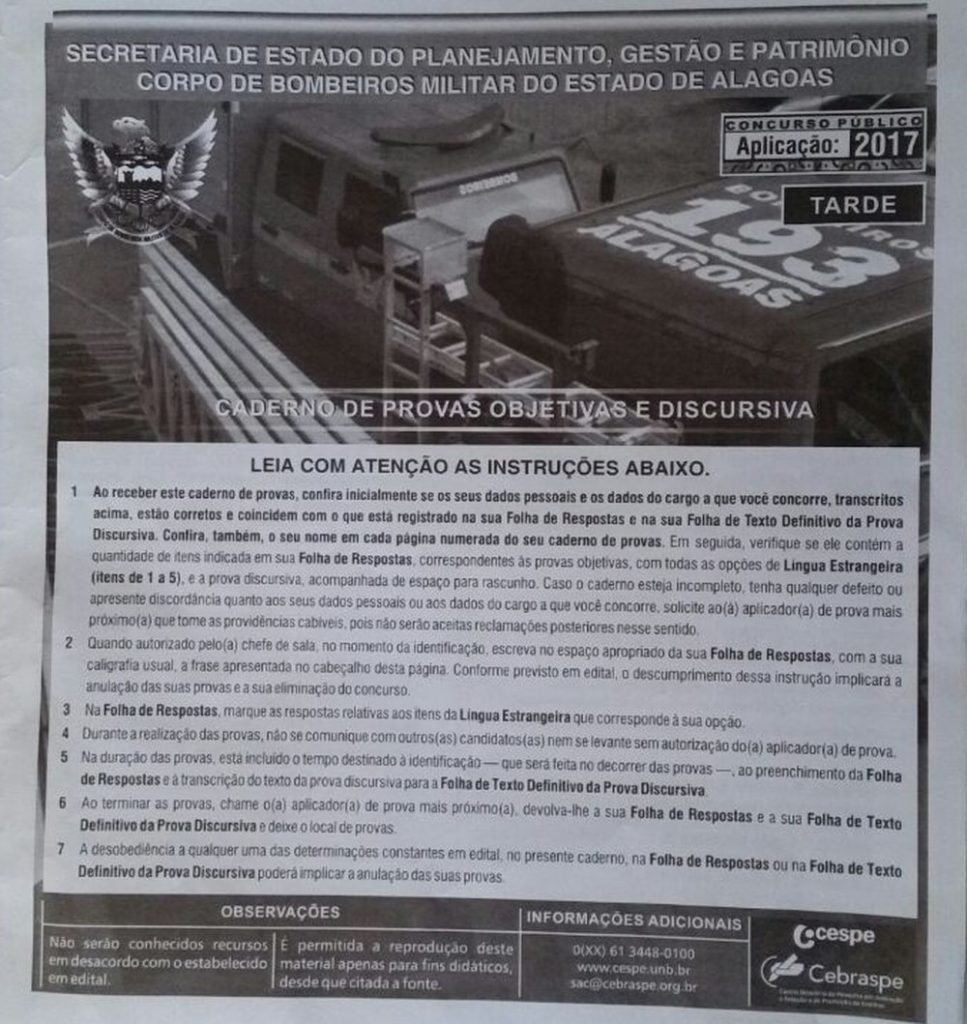 O Ministério Público do Estado de Alagoas (MP-AL) está investigando possíveis irregularidades no concurso para o cargo de oficial combatente do Corpo de Bombeiros Militar de Alagoas (CBM-AL), em 2017. Foi recomendada a anulação da prova de redação e aplicação de uma nova. A informação foi publicada nesta sexta-feira (2).