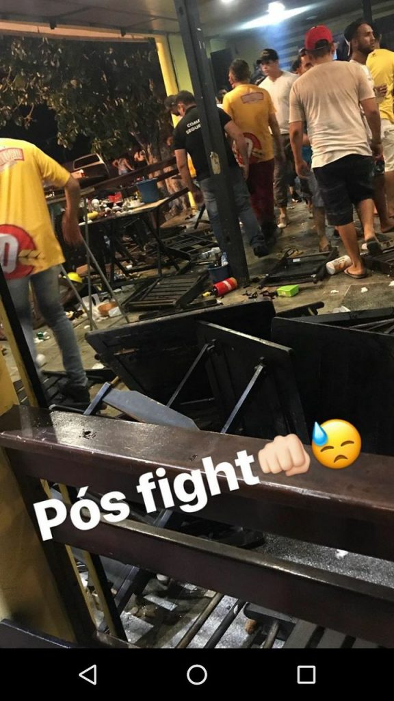 O local tem movimento intenso de frequentadores durante os finais de semana e estava acontecendo música ao vivo, quando iniciou uma discussão; em seguida tomou uma proporção maior que envolveu várias pessoas que trocaram socos, arremessaram mesas, cadeiras e garrafas que ficaram totalmente destruídas.