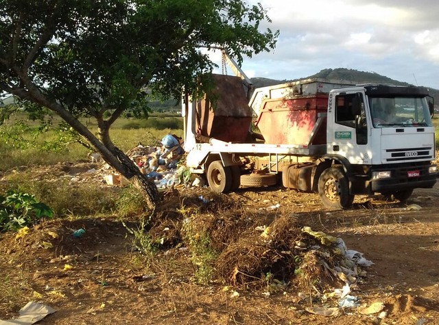 Caminhão despejando irregularmente o lixo no antigo depósito, em Palmeira dos Índios, AL (Foto: Josineide Soares/Arquivo Pessoal)
