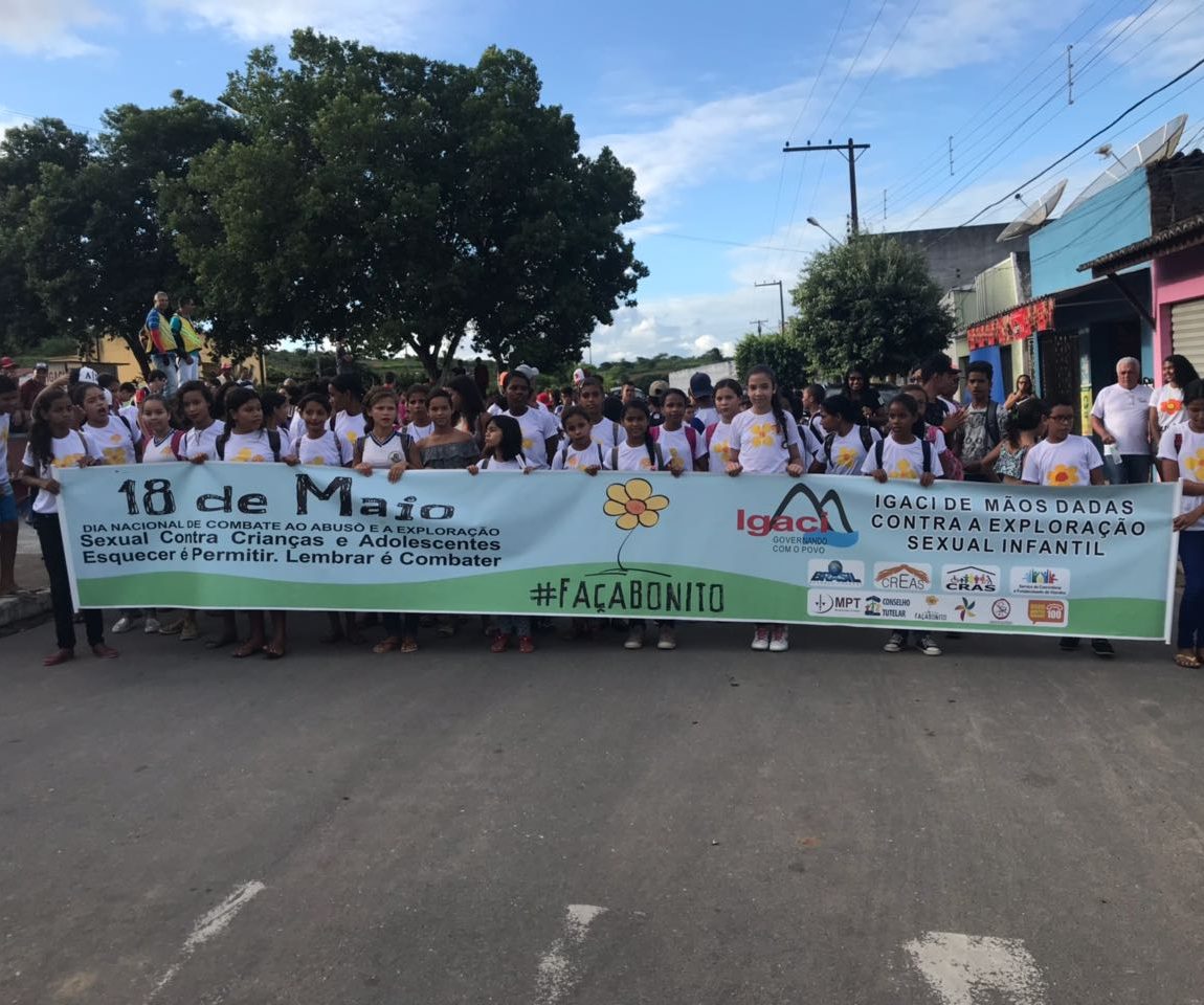 A Prefeitura de Igaci, por meio da Secretaria Municipal de Assistência Social, realizou nesta sexta-feira, 18, uma passeata em alusão ao Dia Nacional de Combate ao Abuso e Exploração Sexual de Crianças e Adolescentes. Com o tema “Faça Bonito”, a ação chamou atenção para o cuidado e a necessidade da defesa do direito de meninas e meninos crescerem de forma saudável e protegida.