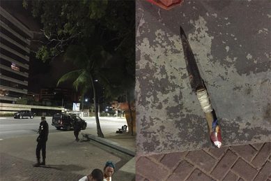 Os agentes foram acionados por populares, em frente ao Pavilhão do Artesanato, na praia da Pajuçara, informando de que o acusado havia esfaqueado outro morador de rua, identificado como “Chileno”.
