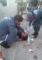 O homem ferido foi identificado como Erinaldo Alves da Silva Júnior, 23. Ele foi atingido por uma pedrada logo acima do olho, recebeu os primeiros socorros ainda no local e foi levado pelo Corpo de Bombeiros para o hospital.
