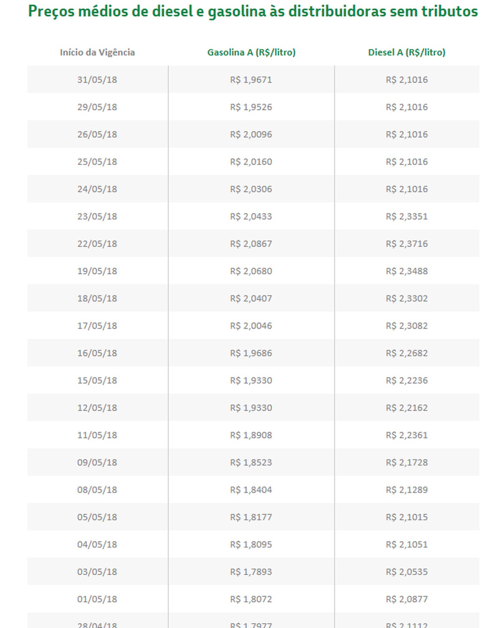 Já o preço do diesel segue congelado em R$ 2,1016. Na quarta-feira da semana passada, a estatal reduziu em 10% o valor do combustível, comprometendo-se a manter o valor por 15 dias.