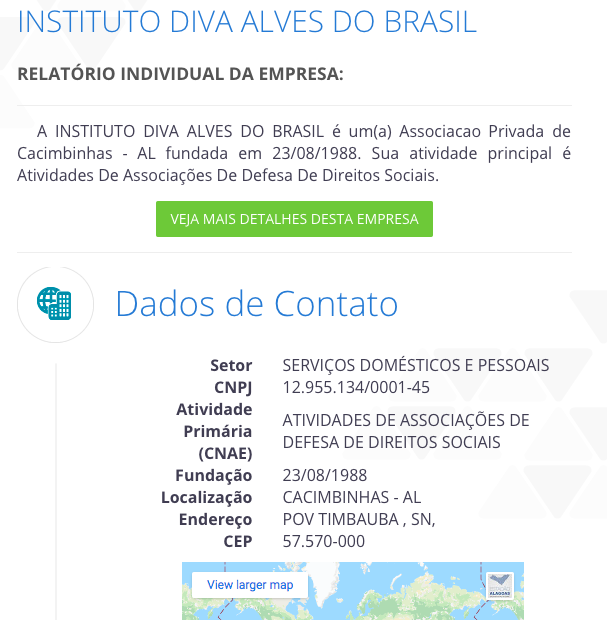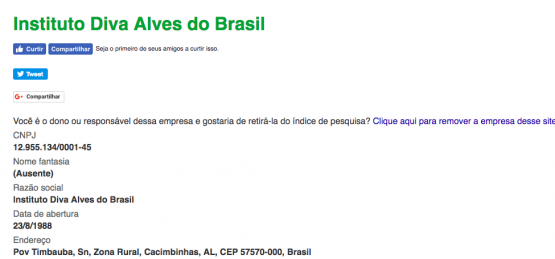 O site da empresa vencedora, foi procurado pela reportagem do Estadão Alagoas, não sendo encontrado. A reportagem obteve informações, por meio de outros sites sobre saúde, onde informa que o Instituto Diva Alves é uma unidade de atendimento à saúde, tipo consultório, apto a prestar serviços de atendimento básico à população, na Zona Rural de Cacimbinhas, existente desde 1988. A sede localizada no povoado Timbaúba pelo Estadão Alagoas se assemelha a um posto de atendimento.