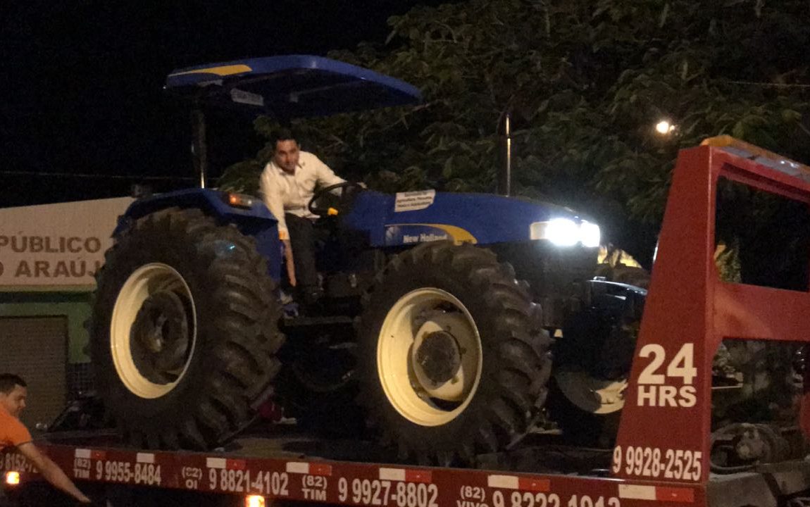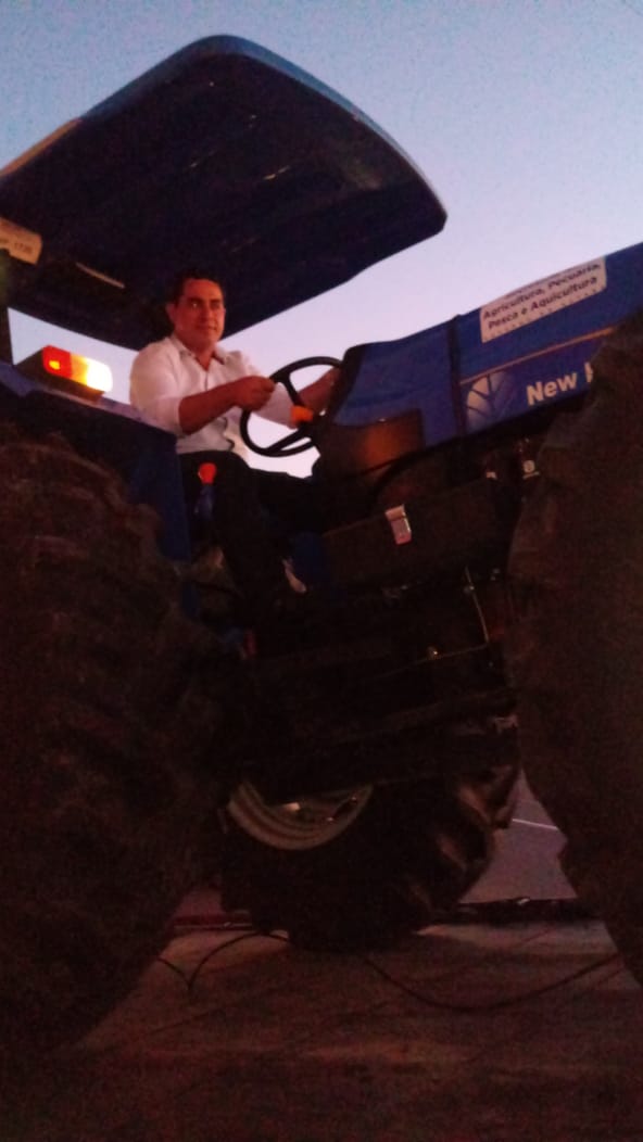 Em carreata, Gleysson Cardoso (que fez questão de dirigir o trator) e sua equipe foram mostrar a população mais uma benfeitoria adquirida pela administração.