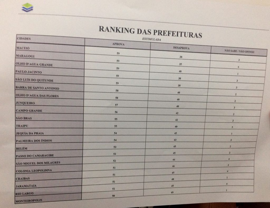 Numa pesquisa divulgada pelo portal Cada Minuto, realizada pelo Instituto Brasileiro de Pesquisa (Ibrape) nos 102 municípios alagoanos, a atual gestão de Palmeira dos Índios, liderada por Júlio Cezar (PSB), aparece com 54% de aprovação, contra 43% de rejeição.