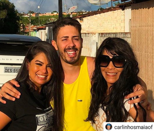 “É verdade @carlinhosmaiaof também estamos felizes!!!”, diz a legenda de uma foto reposta pelo perfil da banda, publicada por Carlinhos Maia, ao lado de Silvânia e Paulinha.