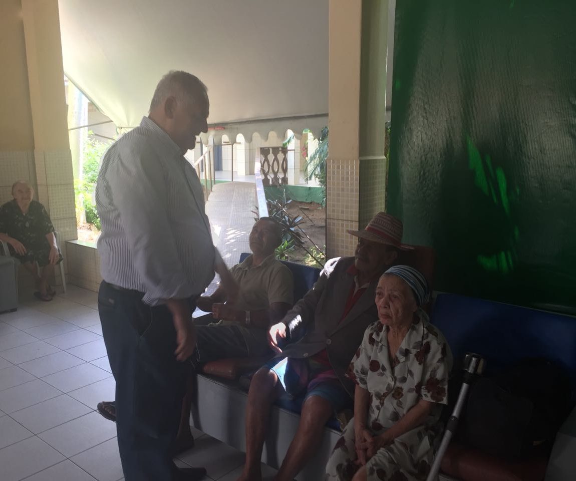 Logo em sua chegada Carimbão acompanhado pelo vereador, Madson Monteiro (PHS) e pela presidente da instituição, Eleneuza Santos, visitou a instituição que recebera apoio em seu mandato como deputado federal, no que se refere a sua intervenção há 10 anos.  Acompanhado pelos idosos, que o recebeu com carinho, Carimbão viu de perto o comprometimento dos funcionários e o atendimento da instituição.