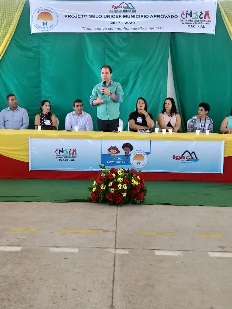 A prefeitura de Igaci realizou, na quarta-feira (22), o 1º Fórum Comunitário do Selo Fundo das Nações Unidas para Infância (Unicef). Organizado pelo Conselho Municipal dos Direitos da Criança e do Adolescente (CMDCA), o evento aconteceu na quadra poliesportiva Vereador Oliveira Francisco Torres e contou com 200 participantes.