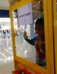 A criança chegou a ficar em um pequeno compartimento da máquina e foi auxiliado pelo pai para conseguir chegar até a vitrine de acrílico do aparelho. Mesmo no desespero, o pai gravou o vídeo como forma de distrair o menino. Depois, mais tranquilo, ao publicar as imagens nas redes sociais, o vídeo viralizou.