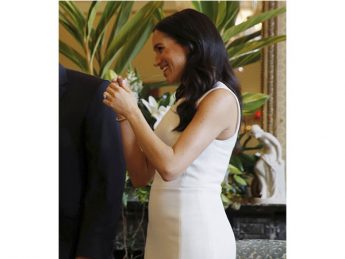 A Duquesa de Essex, que está em viagem oficial pela Oceania com Harry, apostou em um vestidinho branco levemente justo e mostrou os discretos sinais da primeira gestação para um encontro com o Governador-geral da Austrália, Peter Cosgrove, e a mulher dele, Lynne Cosgrove.