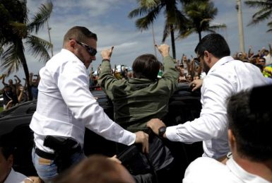 Na volta, a comitiva teve que passar pelo primeiro protesto na porta de seu condomínio desde que transformou o local em seu QG de campanha e agora de transição.