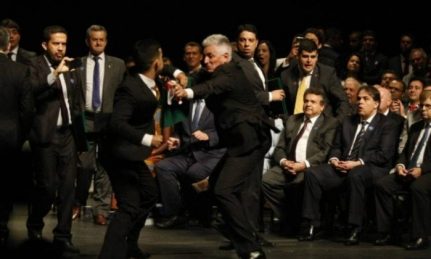 O petista se esquivou e, logo depois, seguranças apartaram a briga. A cerimônia foi realizada no Palácio das Artes em Belo Horizonte.