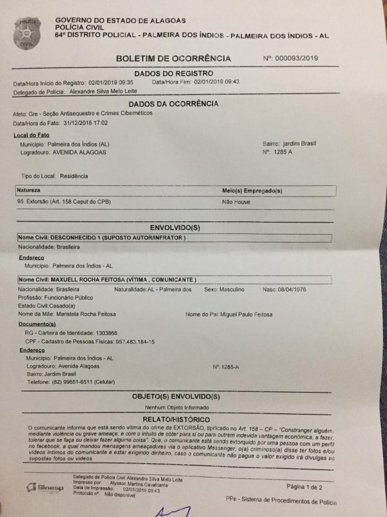 Vale salientar, que em Alagoas 10 casos de extorsão sexual através da internet foram registrados em dois meses. A organização criminosa tem como foco políticos alagoanos, e homens, em sua maioria casados.