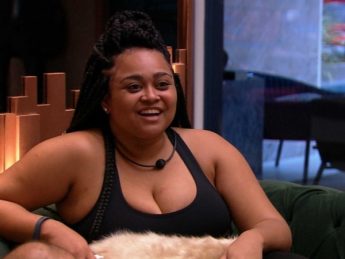 Os brothers conversam na sala e Rízia fala que sente frio quando Tiago Leifert aparece na tela. Vinicius e Alan concordam e a sister diz: “Tá gelado agora na sala? Quando o Tiago aparece me dá um frio. Eu fico com muito frio!”.
