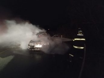 Carro pega fogo e quatro pessoas ficam feridas na AL-101 Sul