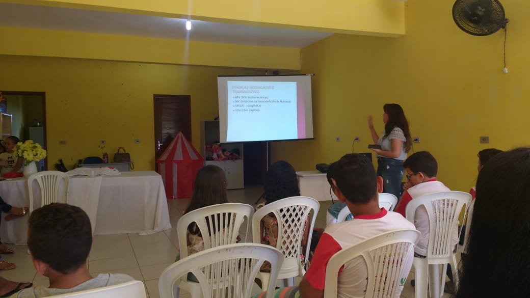 Na palestra foram abordados pequenos conceitos sobre a sexualidade, para que as adolescentes pudessem compreender melhor o que esta representava. Bem como o foco principal: a gravidez na adolescência, explicando os riscos, o desafio, as responsabilidades, métodos de prevenção, ou seja, tudo o que uma adolescente passa a enfrentar a partir do momento que descobre estar grávida. Todas se mostraram participativas em relação à atividade.