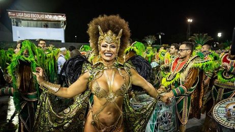 A rainha de bateria da escola, Viviane Araújo, festejou a vitória da Mancha.