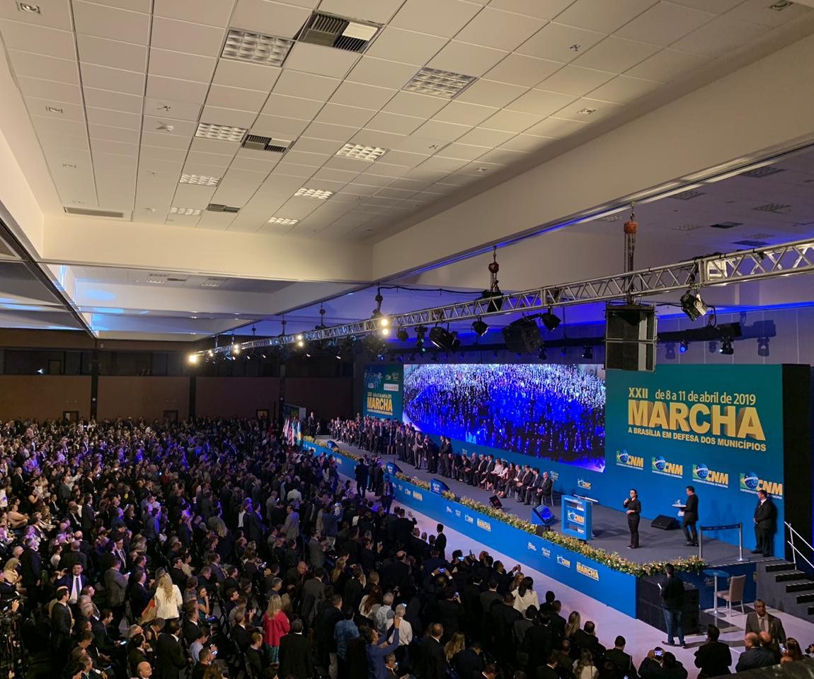 A primeira Marcha no comando de Glademir Aroldi foi marcada por um discurso forte e cheio de emoção. Por diversas vezes, o presidente da Confederação Nacional de Municípios (CMN) foi interrompido por aplausos e manifestações de apoio dos gestores locais que lotaram o Centro de Convenções Internacional do Brasil (CICB). Aroldi ressaltou que a Marcha é a maior representatividade da democracia brasileira e que o tema “Unidos pelo Brasil” não poderia ter um significado maior do que nesse momento.