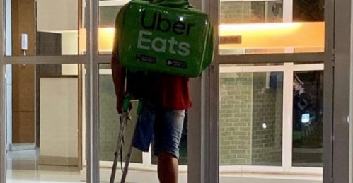 Uma foto publicada no Instagram, na noite de quinta-feira, 11, viralizou nas redes sociais ao mostrar uma cena um pouco inusitada, mas que serviu de inspiração e foi considerada um choque de realidade para muita gente. Na imagem, um entregador do aplicativo Uber Eats espera para finalizar uma entrega em um prédio da capital. O detalhe: Carlos André, não possui uma das pernas.